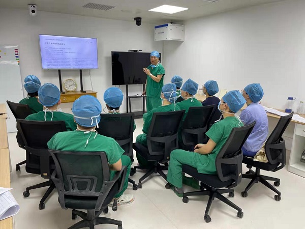“既要做好麻醉又要不断学习,只有不断学习、知识更新,才能从容面对外科学发展,从容面对麻醉学发展,不落伍。”麻醉科主任傅润乔如是说。秉承“实践与理论双促进,理论先行”的原则,麻醉科在傅润乔的带领下,利用业余时间,积极开展业务学习。由于麻醉科每天都有大量的手术麻醉任务,学习时间既被动又相对碎片化不容易集中。为了保证大家能够静下心来集中学习,傅润乔提议每季度举办一次课内讲课学术活动周,时间是从周一到周五,早上7:15-8:00,35分钟讲课,10分钟讨论。除了讲课周,有科研最新资讯或典型病例时,也随时在上述时间段进行晨课学习。