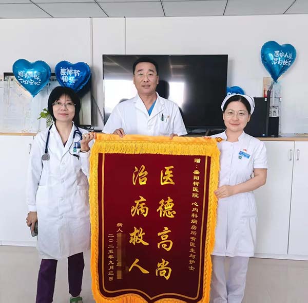 2025年9月3日,清华大学附属垂杨柳医院心内科(7C)的医护人员收到了一份沉甸甸的礼物。患者邢女士特意将一面“医德高尚,治病救人”锦旗郑重地交到护士长张晓敏的手中,以此表达她对心内科全体医护在她和家人多次住院期间给予的精心治疗和无私关切的衷心感谢。这面沉甸甸的锦旗,不仅是一份荣誉,更承载着患者全家对医护人员深深的信任与肯定。