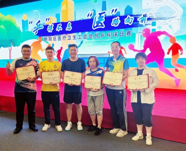 9月16日,“乒”博不息,“医”路向前—朝阳区医疗卫生工会会员乒乓球比赛在超级光合运动中心圆满举办,全区近60家单位,244名选手参赛。医院高度重视此次比赛,依托乒乓球社团积极组建参赛队伍,由工会委员郭政领队,队员陈岚、李臻林、王俊文、楚德国、芦文彬共6名选手,参加了男单、女单、男双、女双全部四个项目的比赛。选手们在比赛中发挥出色,斩获多项荣誉,展现了垂医人团结拼搏在外一颗星的精神风貌。