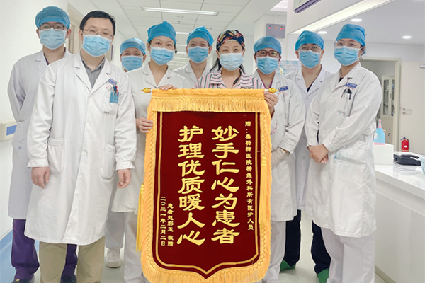 2021年2月2日,10C护理团队收到患者赵彩玉送来的锦旗,患者特别感激,连连表扬我们护理团队,表扬我们对患者有耐心、细心 ,以积极向上的态度对待患者,我被疾病折磨难受的时候,一直安慰我,我倍受感激。