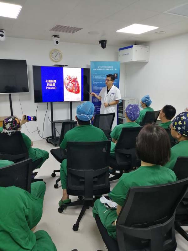 为进一步深化学科建设,搭建科室内部学习交流平台,麻醉科开展第三期“麻醉学术周”活动。本期学习的主题是缺血性心脏病患者的麻醉与经食管心脏超声。学术周邀请到了安贞医院麻醉科副主任程卫平教授、阜外医院主要负责术中超声的麻醉科副主任段福建教授、阜外医院麻醉科周勇教授,以及医院心外科主任郎利、医院麻醉科主治医师王立红。专家们围绕《缺血性心脏患者的麻醉与围术期管理》、《经食管超声(TEE)心脏基础切面》、《术中TEE心功能评估》、《冠脉循环与心腔结构》、《TEE体外模型操作实践(workshop)》等主题进行了为期一周的授课。